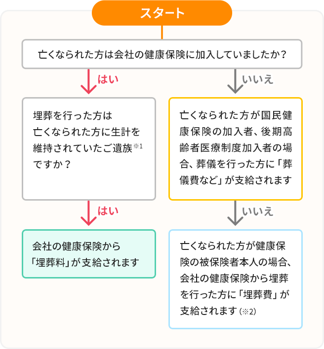 ※2 亡くなられた方が被扶養者の場合には、「家族埋葬料」が支給されます。