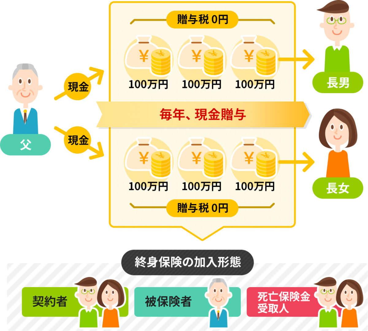 現金を子や孫へ贈与するともらった者が自由に使うことができる為、生活習慣が変わって無駄遣いをされたりと、自分の思いとは違う使い方をされる可能性もあります。そこで、その贈与した現金を生命保険に変えることで無駄遣いをさせない方法がいま注目されています。