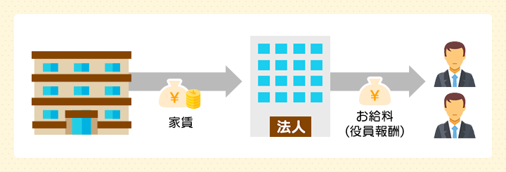 オーナー様の家族(配偶者や子など)を会社の役員にして役員報酬を分散支給すると、それぞれ給与所得控除が使えることから、節税効果がさらに大きくなります。